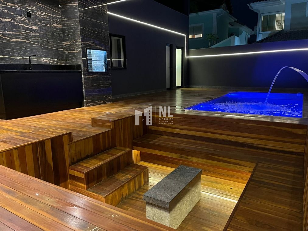 Piscina; 2 áreas gourmet com cooktop de indução instalados; toda área de lazer da casa com deck de madeira; única casa do condomínio com praça de fogo; todos os interruptores da casa são touch screen e Wi-Fi podendo ser controlados por comando de voz;